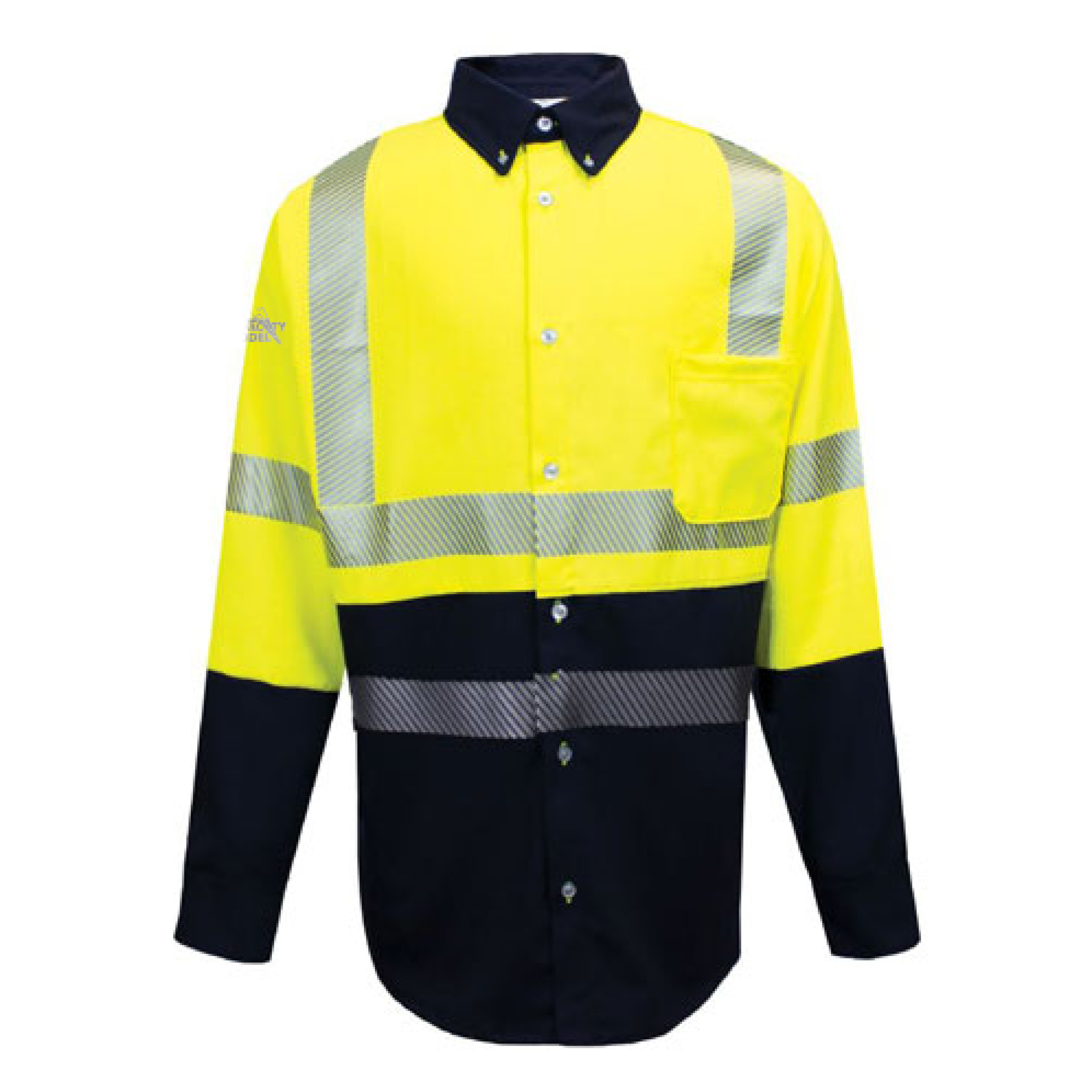 - Fabric/Material: Fl. Yellow: 6.5 oz. FR Hi-Vis Modacrylic Blend / Navy: 7 oz. Westex® UltraSoft®